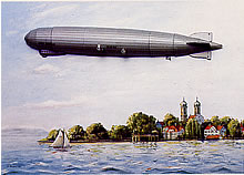 Halbes Luftschiff auf Gemälde von Friedrichshafen. Herausgegeben